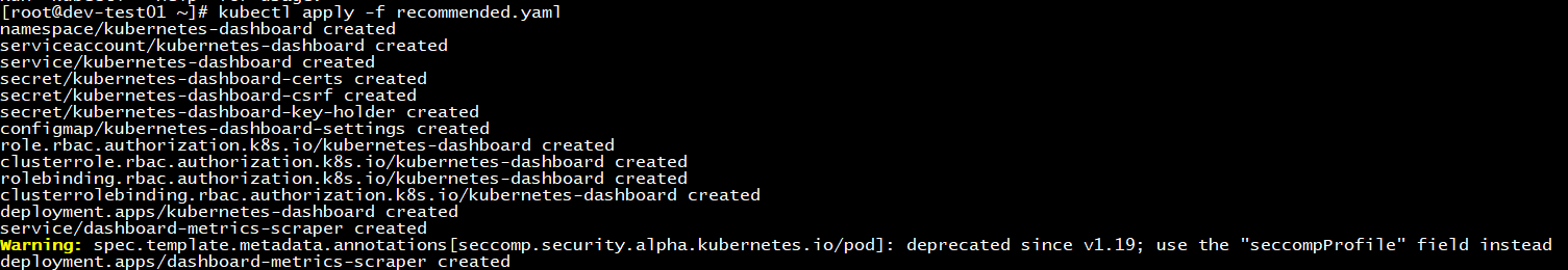 [root@dev-vm1 ~]# kubectl get pods -A NAMESPACE NAME READY STATUS RESTARTS AGE kube-system calico-kube-controllers-78d6f96c7b-t2xnr 1/1 Running 0 22m kube-system calico-node-4t2pb 1/1 Running 0 22m kube-system coredns-545d6fc579-5rqjz 0/1 Running 0 28m kube-system coredns-545d6fc579-gztfz 0/1 Running 0 28m kube-system etcd-dev-vm1 1/1 Running 0 28m